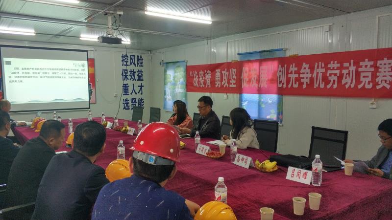 金猴房產公司副總經理鄭舜堯、項目經理單增建及總包單位威建四公司相關領導分別向調研組匯報了應對疫情采取的措施和經驗,以及勞動競賽活動中的創新做法和成績。楊振同調研員對金猴觀湖閱山項目應對疫情和開展競賽活動情況給予了高度評價,他說:“項目各方能夠齊心協力、多措并舉應對疫情,期間通過開展內容豐富的勞動競賽,充分調動施工人員的積極性,保證了項目進度,達到了活動的組織目的?!?